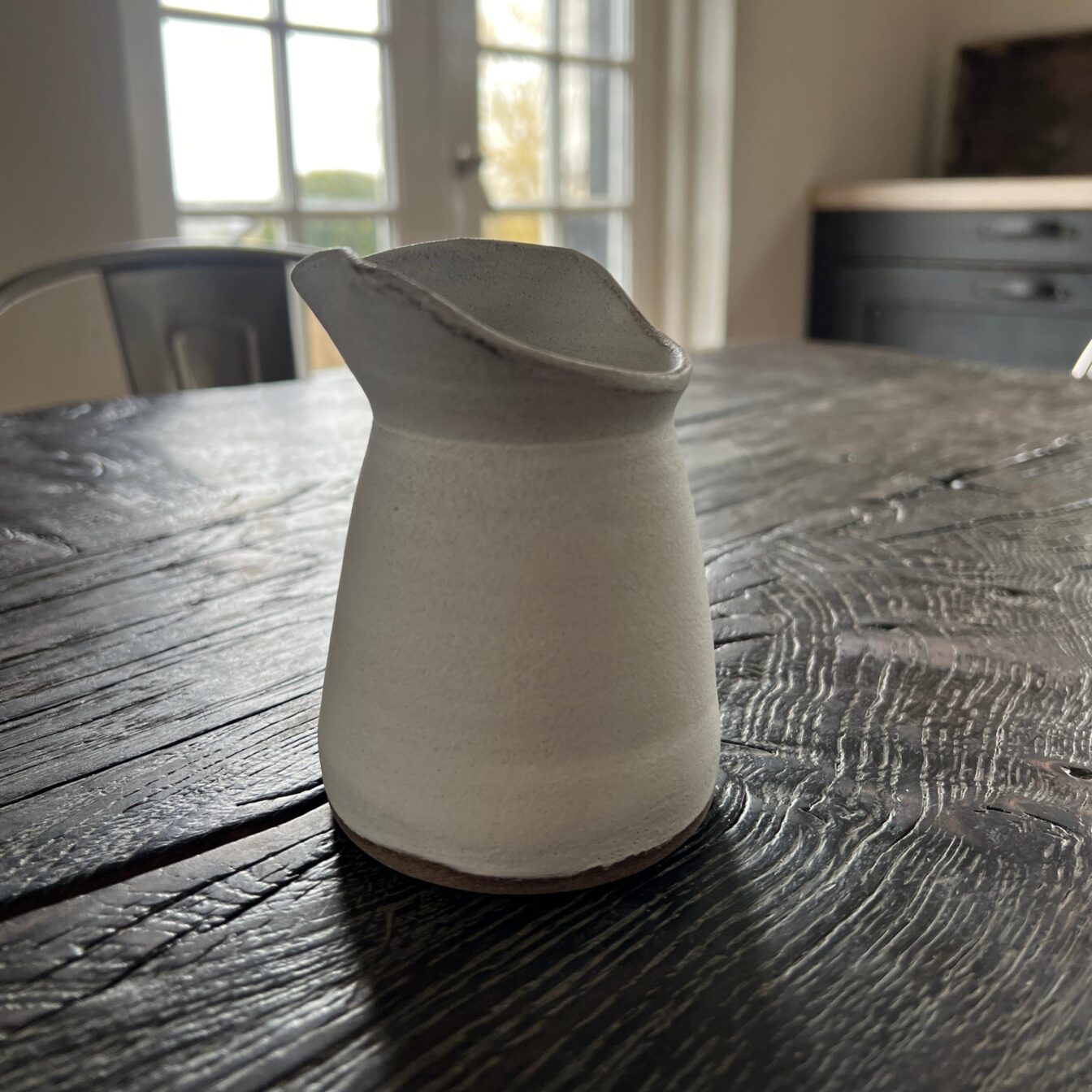 Super fin flødekande håndlavet i stentøj, der giver den et rustikt udtryk.