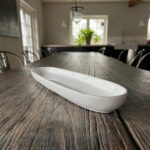 Jeg har selv haft det her fad i mange år. Omend jeg ved, at det egentligt er lavet til at servere brød, så bruger jeg det lige så meget til f.eks. en tomatsalat. Følger du mig på Instagram vil du se, at jeg ofte bruger netop det her lange smalle fad. Et eksempel herpå, kan du se her til højre.