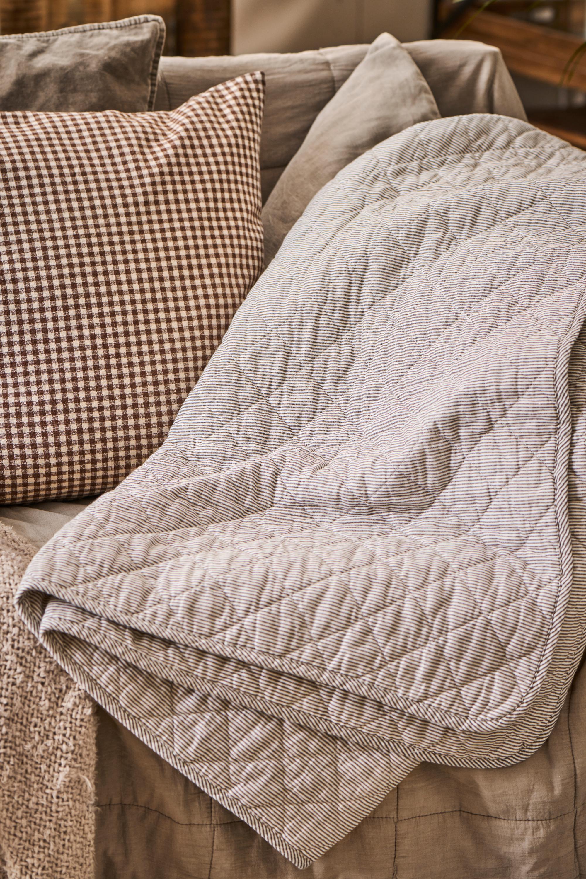Blødt og klassisk quiltet tæppe med fine mælkedrengestriber