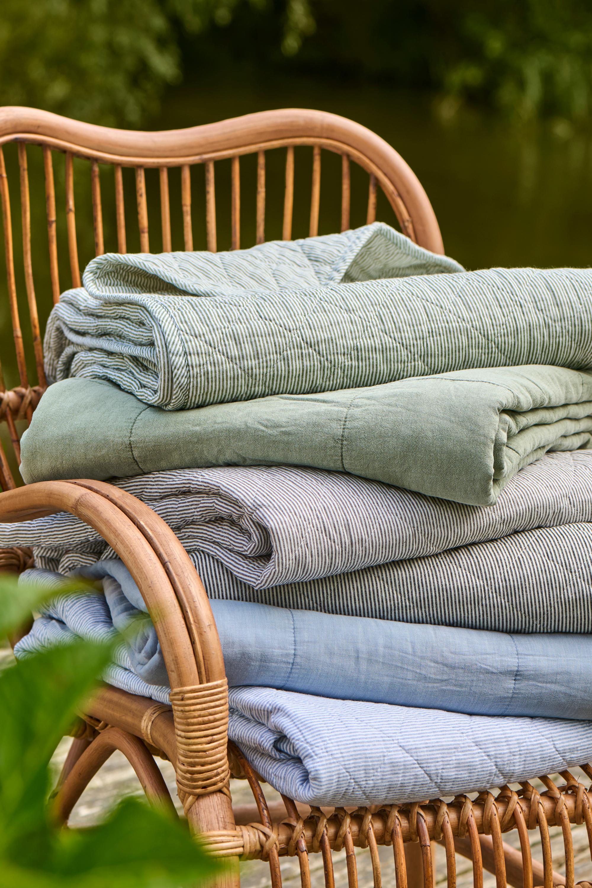 Blødt og klassisk quiltet tæppe med fine mælkedrengestriber