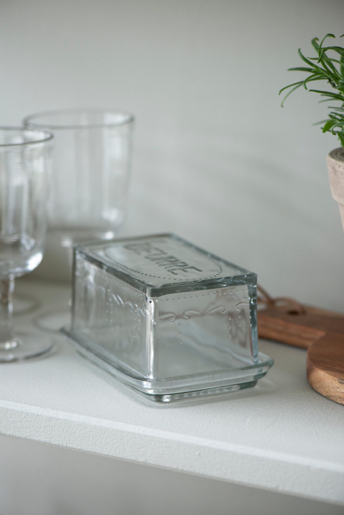 Fin smørboks i kraftigt glas.